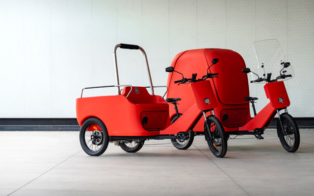 Tre ruote a pedalata assistita per brevi spostamenti a bordo di uno strumento di lavoro versatile e adatto a qualsiasi contesto, predisposto per il trasporto di persone e merci.